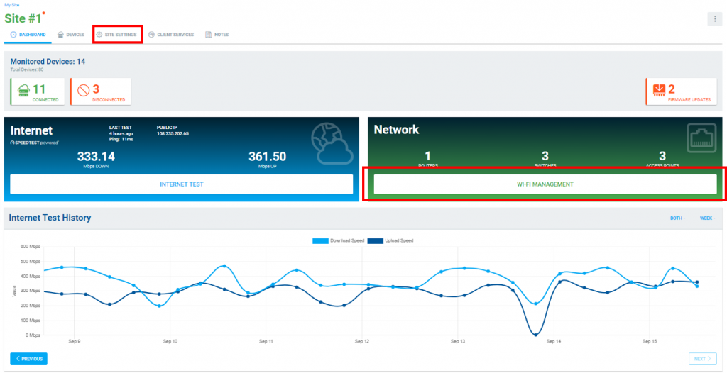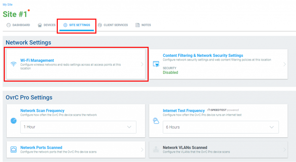 Or, select the “Site Settings” tab, then “Wi-Fi Management” under “Network Settings.”