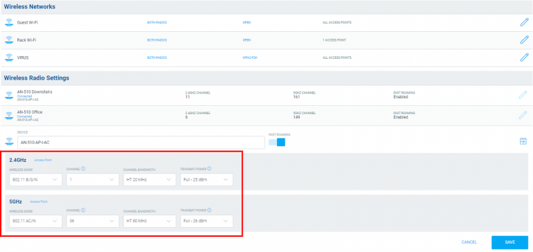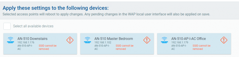 Now, from a single, centralized view, you can add/edit networks, manage SSIDs and passwords, and configure channel, power levels, and roaming features – all from the OvrC mobile or web app. Choose to push settings to select or all APs in a single click to shave minutes – if not hours – off your setup and configuration time.